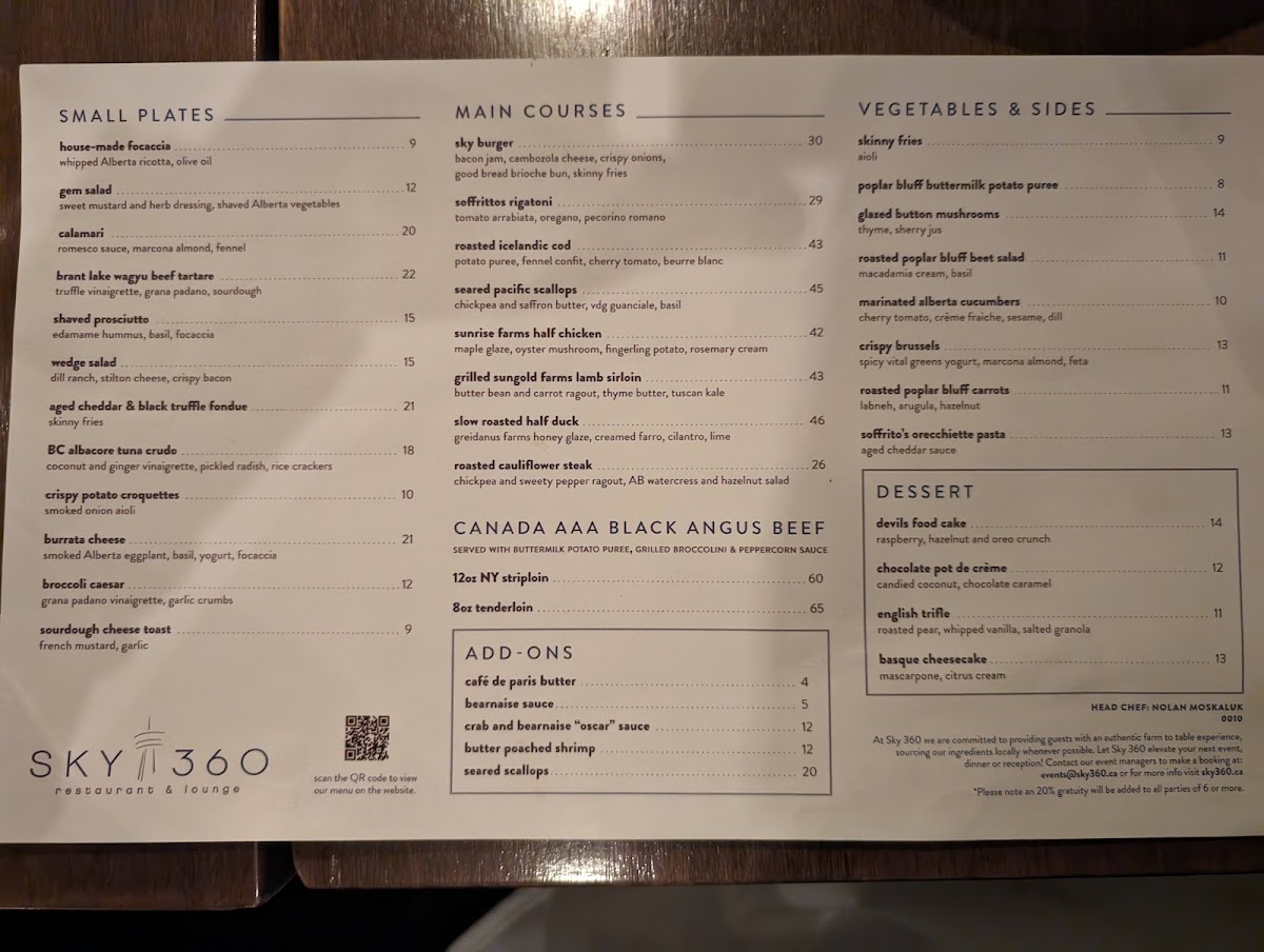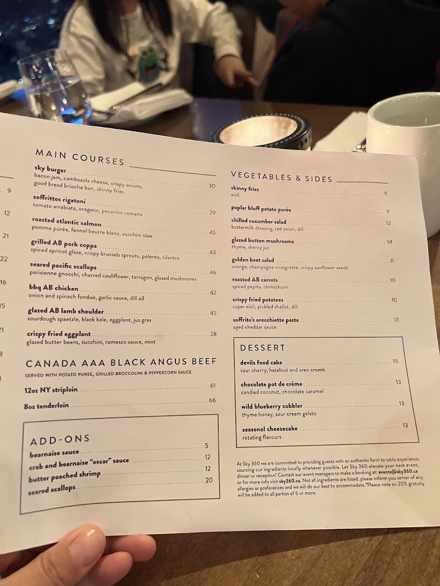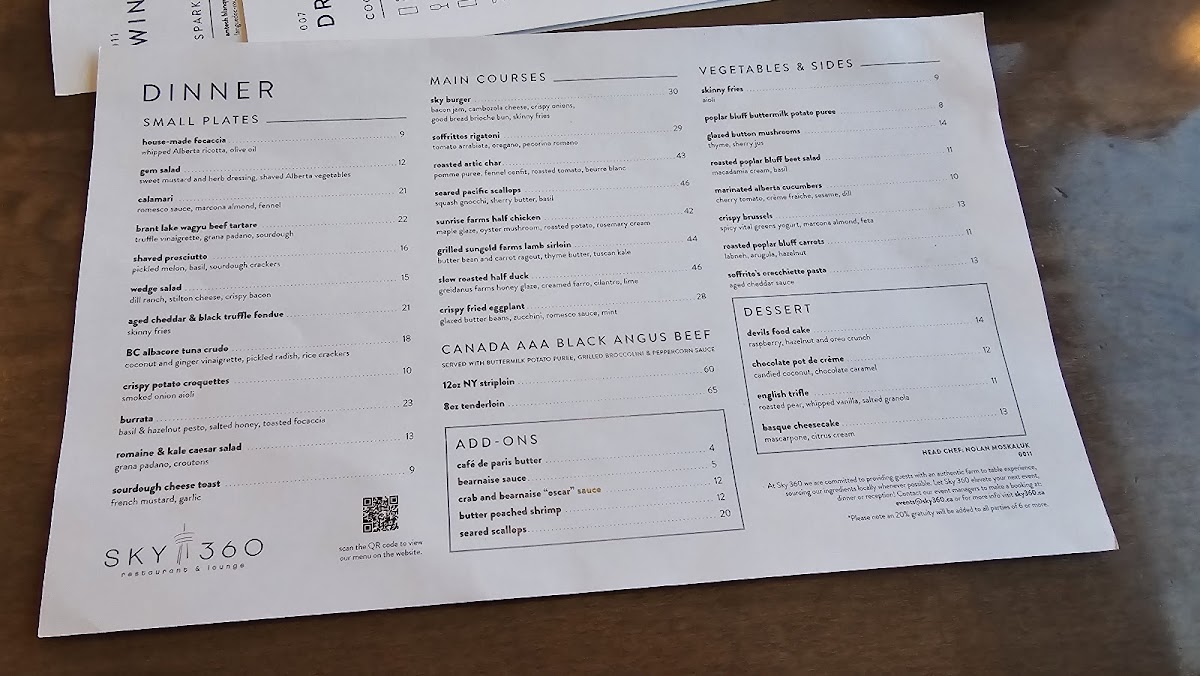 Welcome to Sky 360, Calgary's premier dining destination perched atop the Calgary Tower, where breathtaking 360-degree views meet exceptional culinary experiences. This restaurant effortlessly combines a vibrant atmosphere with an impressive menu that caters to diverse palates.